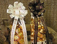 Favor style ribbon is sold in quantities of 25 pieces only. The Favor style ribbon is printed on single face satin ribbon with names and design on the left of the ribbon. Additional text or date can be on the right side of ribbon. Special ribbon designs are listed in the stock design section for your use. Text and design colors must be the same color,please choose from the imprinted ribbon only colors.
