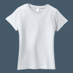 6.1-ounce, 100% cotton (preshrunk) Seamless double-needle collar Double-needle sleeves and hem Taped neck and shoulders Feminine shoulder, arm and sleeve styling Relaxed fit Sports Grey 90/10 cotton/poly. Ladies Sizes XS-3XL